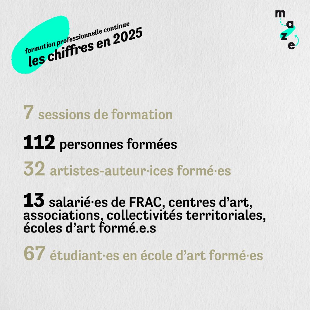 Depuis 2018, Maze s’engage dans la formation professionnelle continue pour permettre une véritable montée en compétences des artistes-auteur·rice·s et des salarié·e·s. A l’écoute des besoins du secteur, nous proposons une pédagogie innovante, basée sur le visuel, narrative et interactive. Nous assurons une veille permanente du secteur et effectuons un suivi important des stagiaires pour leur assurer un accompagnement pas à pas de leur montée en compétence, grâce à des mises en pratiques et des exercices.